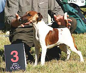 | TŘÍDA VETERÁNŮ: BÁRA Z DLOUHÝCH DÍLŮ člp/fxh/29620/01 *25.6.1999 o: Oskar de la Rosa m: Ajka z Dlouhých dílů Výborný 1, Nejlepší veterán, BiS Veterán |