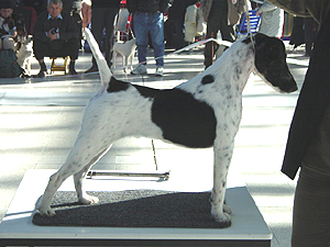 krátký hřbet, prut dobře nasazen, úzký chod vpředu, fena se hůře ukazuje.