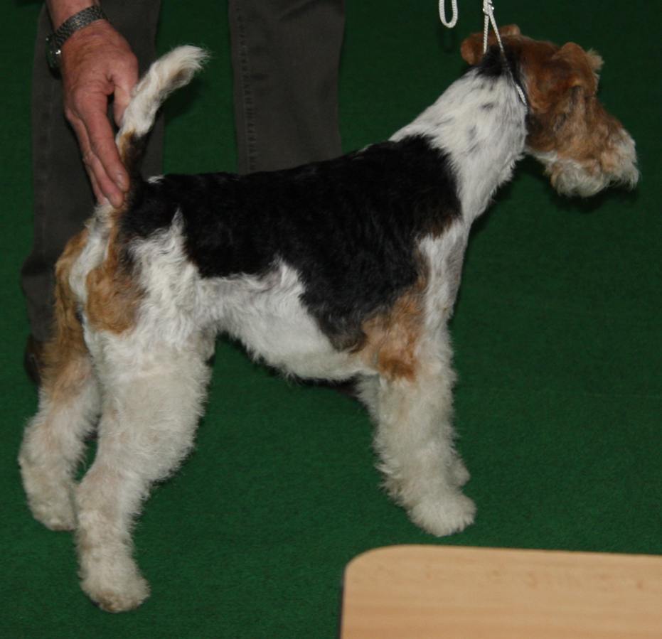 Vyšší pes střední síly kostry, výborná hlava i ucho, výborně nesený prut, korektní přední fronta, strmé postavení pánevních končetin, méně prostorný pohyb, srst výborné kvality.