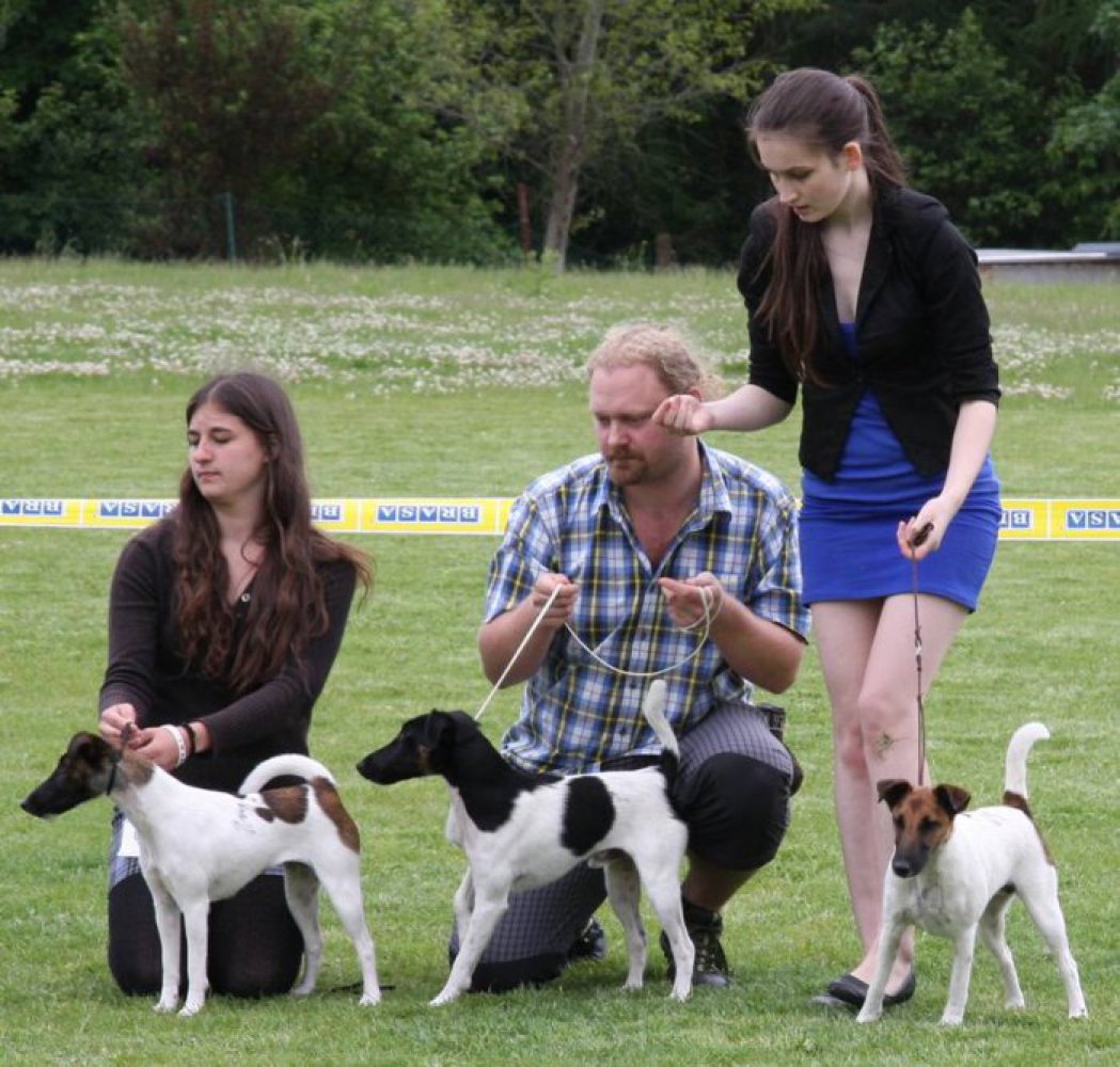 Nevelká fena drobné kostry, pěkná hlava, krátký krk, končetiny by mohly být lépe zaúhleny a prut výše nasazen