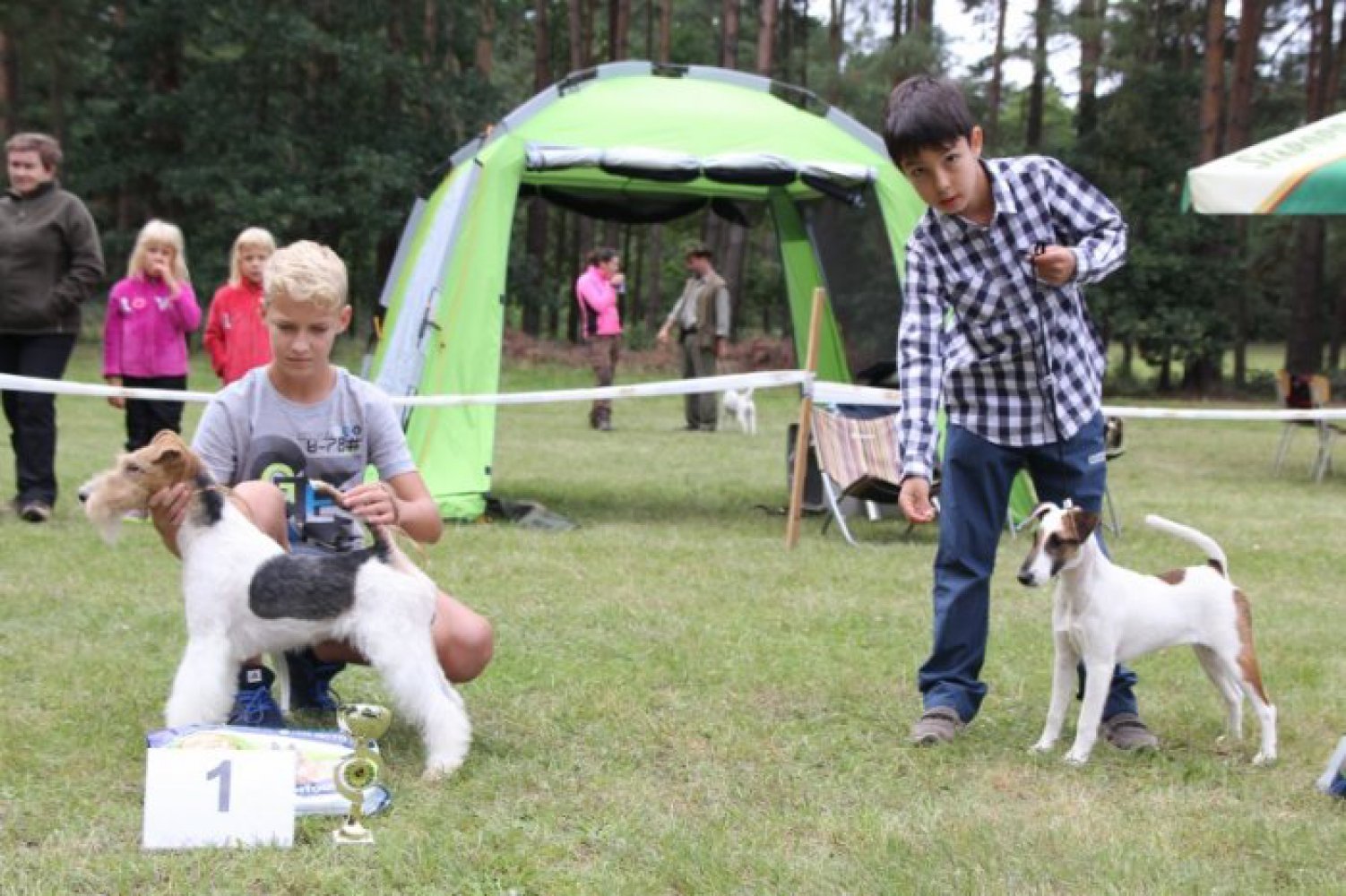 Elegantní fenka velmi pěkné hlavy, přirozeného ucha, suchý osvalený krk, výrazný kohoutek, výborně nesený prut, pravidelný pohyb a výborná kvalita srsti.
