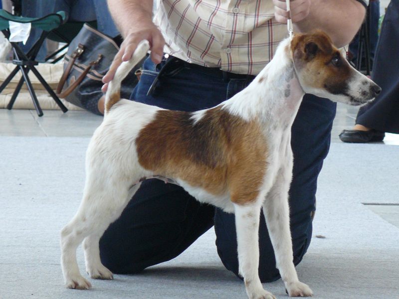 Výška 38 cm, skus nùžkový, plnochrupý. Pes krátkého rámce, výborná hlava, tmavé oko, bezvadné ucho, výborná horní linie, dobře nasazený a nesený prut, výborný prostorný pohyb.