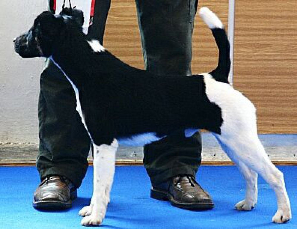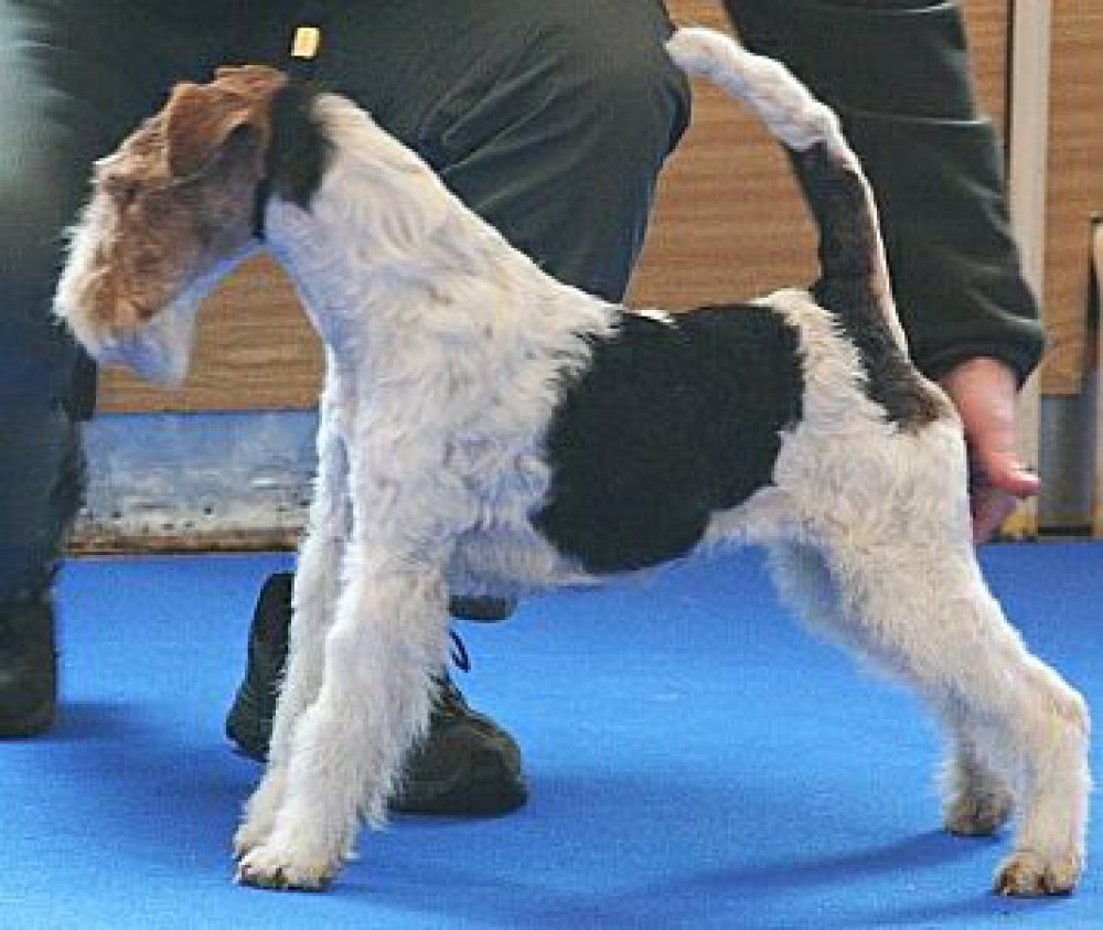 Dobře postavené štěně, dobrá hlava, dobře nesené ucho, malé tmavé oko, korektní skus, dostatek krku, rovný hřbet. Celý by mohl být kratší, zaúhlení vpředu i vzadu korektní. Tvrdá srst. Ještě mladistvý pohyb.