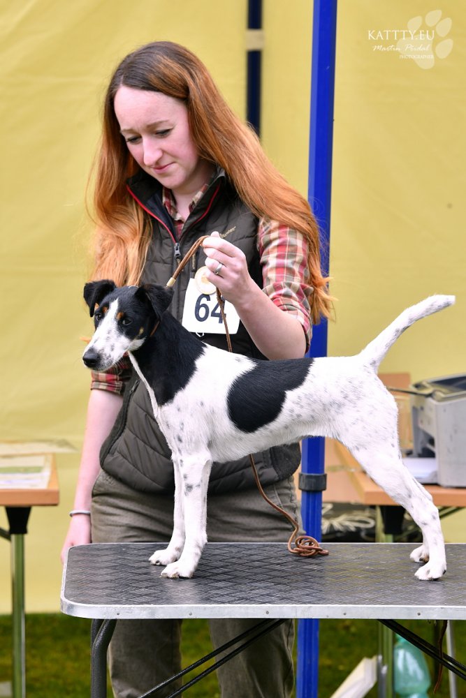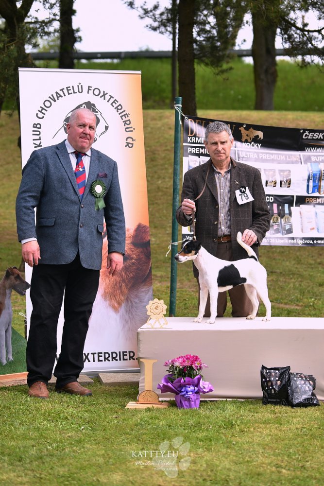 excellent type, outstanding, nice character, dark eyes, excellent expretions, excellent ears, excellent topline, should be shorter in loins, well angulated front and back, moves good with drive / výborný typ, vynikající, pěkná povaha, tmavé oči, výborné uši, výborná horní linie, mohla by být kratší v bedrech, dobře zaúhlená vepředu i vzadu, pohybuje se dobře energicky