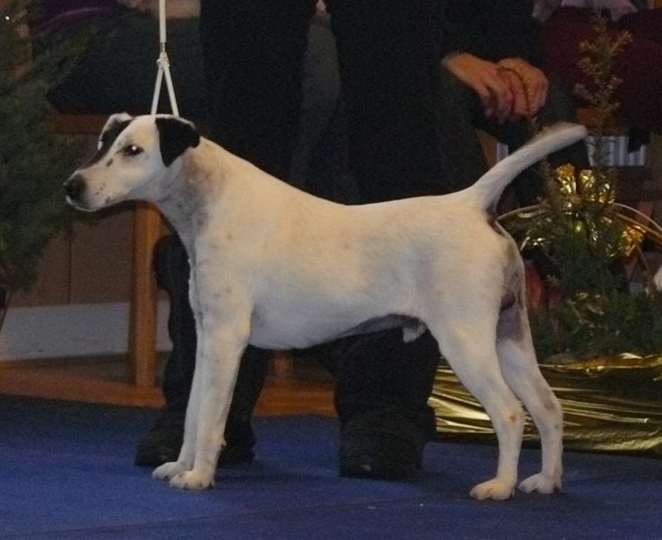 Oko tmavé, skus nùžkový, fena správné velikosti, výborné hlavy i ucha, s elegantní horní linií vysoko nasazený a nesený prut, výborné úhlení předních i zadních končetin, správný hrudník, užší chod vzadu, fena výborně na výstavu upravena i předvedena.