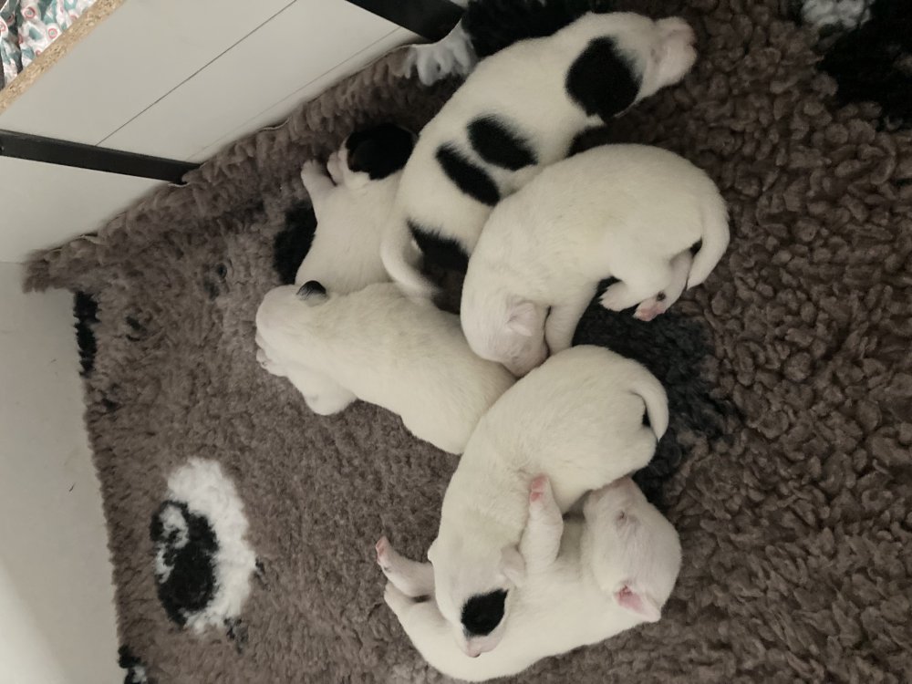 štěňata v barvě tricolor, z výborného spojení - m. Jezabell od Rytíře Malovce, o. Lombardo z Děkanu. Rodiče výstavně úspěšní. 4 pejsci a dvě fenky, k odběru v polovině února. Cena 12 500kč.